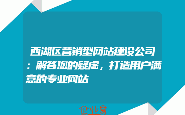 - 西湖区营销型网站建设公司:解答您的疑虑,打造用户满意的专业网站