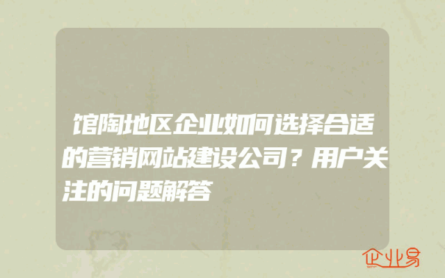 - 馆陶地区企业如何选择合适的营销网站建设公司?用户关注的问题解答