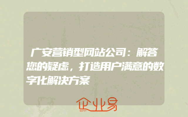 - 广安营销型网站公司:解答您的疑虑,打造用户满意的数字化解决方案