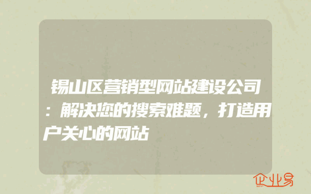 - 锡山区营销型网站建设公司:解决您的搜索难题,打造用户关心的网站