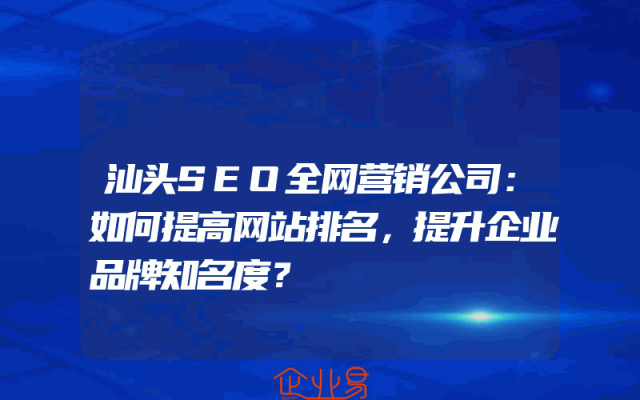 - 汕头SEO全网营销公司:如何提高网站排名,提升企业品牌知名度?