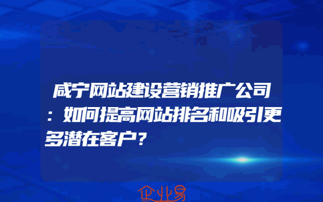 - 咸宁网站建设营销推广公司:如何提高网站排名和吸引更多潜在客户?