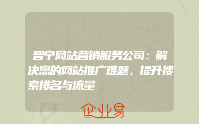 - 晋宁网站营销服务公司:解决您的网站推广难题,提升搜索排名与流量