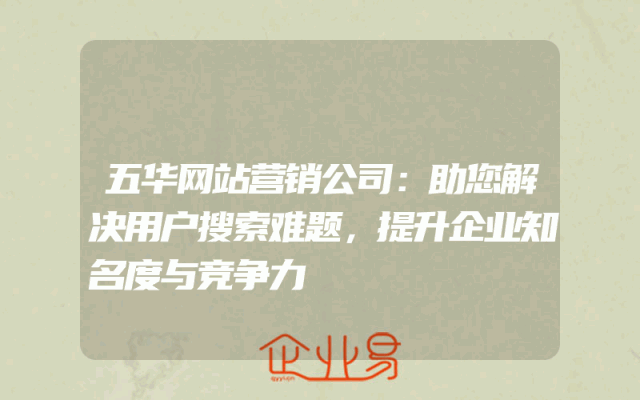 - 五华网站营销公司:助您解决用户搜索难题,提升企业知名度与竞争力