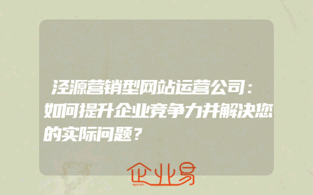 - 泾源营销型网站运营公司:如何提升企业竞争力并解决您的实际问题?