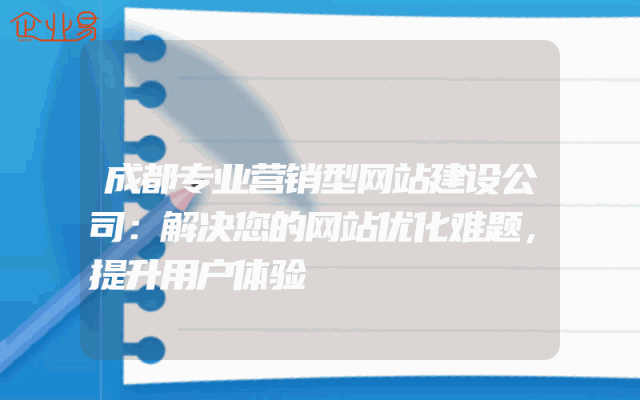 - 成都专业营销型网站建设公司:解决您的网站优化难题,提升用户体验