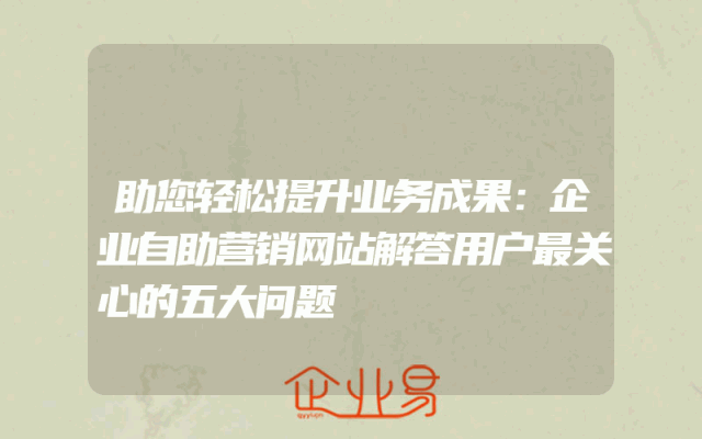 - 助您轻松提升业务成果:企业自助营销网站解答用户最关心的五大问题