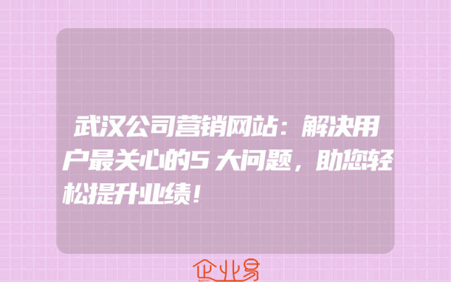- 武汉公司营销网站:解决用户最关心的5大问题,助您轻松提升业绩!