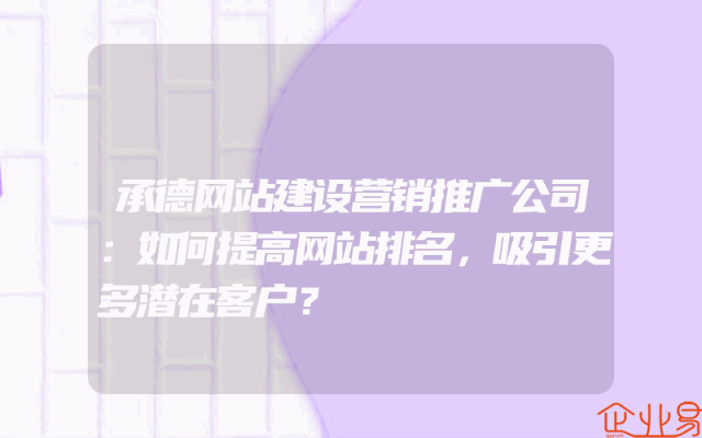 - 承德网站建设营销推广公司:如何提高网站排名,吸引更多潜在客户?