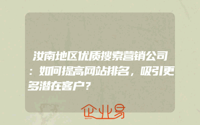 - 汝南地区优质搜索营销公司:如何提高网站排名,吸引更多潜在客户?