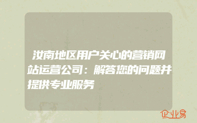 - 汝南地区用户关心的营销网站运营公司:解答您的问题并提供专业服务