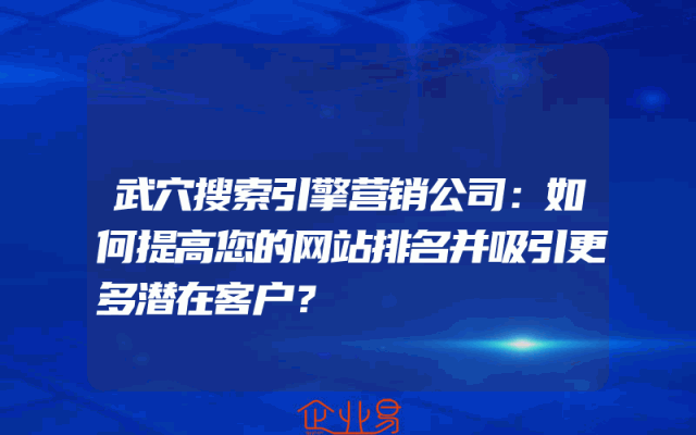 - 武穴搜索引擎营销公司:如何提高您的网站排名并吸引更多潜在客户?