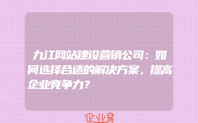 - 九江网站建设营销公司:如何选择合适的解决方案,提高企业竞争力?