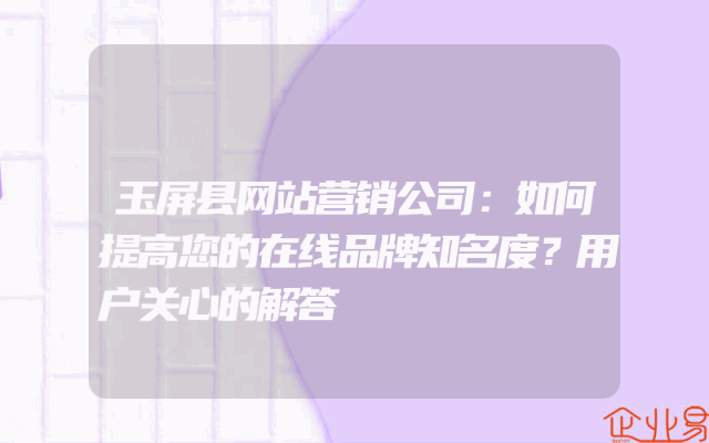 - 玉屏县网站营销公司:如何提高您的在线品牌知名度?用户关心的解答