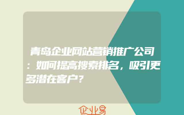 - 青岛企业网站营销推广公司:如何提高搜索排名,吸引更多潜在客户?