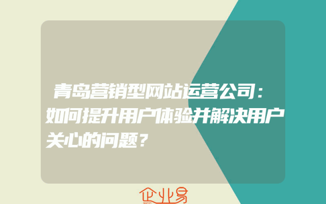 - 青岛营销型网站运营公司:如何提升用户体验并解决用户关心的问题?