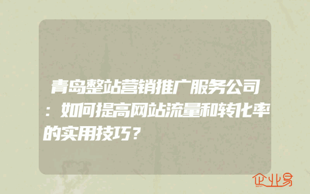 - 青岛整站营销推广服务公司:如何提高网站流量和转化率的实用技巧?