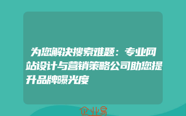 - 为您解决搜索难题:专业网站设计与营销策略公司助您提升品牌曝光度