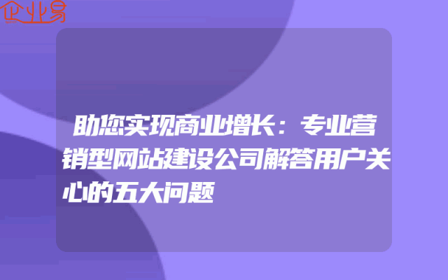 - 助您实现商业增长:专业营销型网站建设公司解答用户关心的五大问题