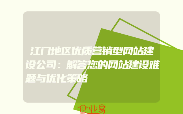 - 江门地区优质营销型网站建设公司:解答您的网站建设难题与优化策略