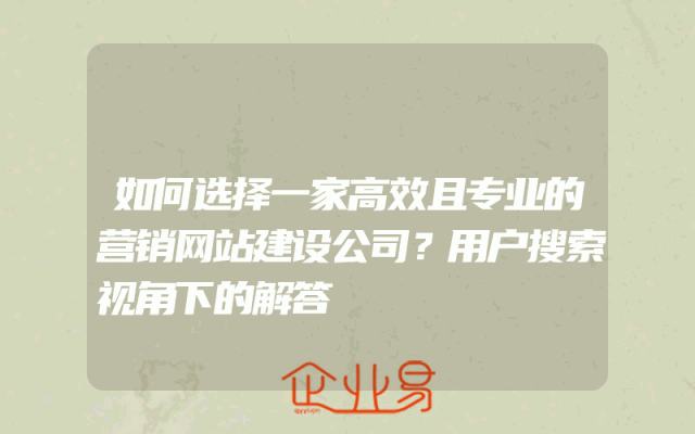 - 如何选择一家高效且专业的营销网站建设公司?用户搜索视角下的解答