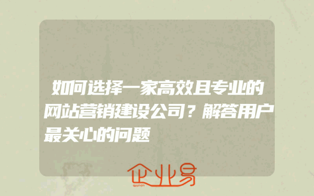 - 如何选择一家高效且专业的网站营销建设公司?解答用户最关心的问题