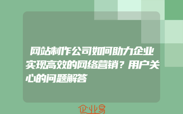 - 网站制作公司如何助力企业实现高效的网络营销?用户关心的问题解答