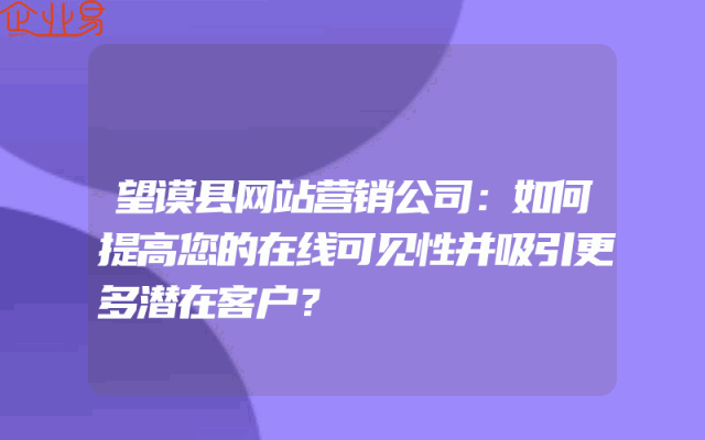 - 望谟县网站营销公司:如何提高您的在线可见性并吸引更多潜在客户?