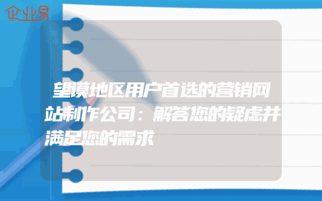 - 望谟地区用户首选的营销网站制作公司:解答您的疑虑并满足您的需求