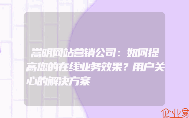 - 嵩明网站营销公司:如何提高您的在线业务效果?用户关心的解决方案