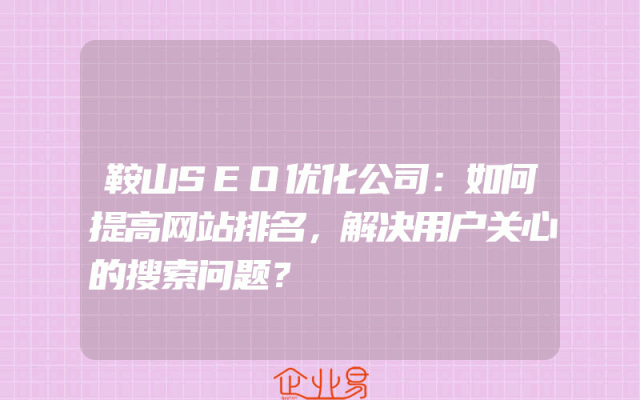 - 鞍山SEO优化公司:如何提高网站排名,解决用户关心的搜索问题?