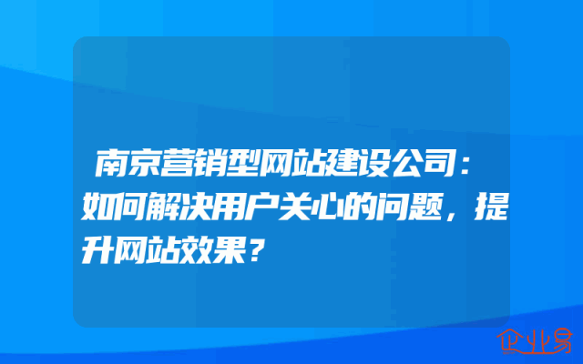 - 南京营销型网站建设公司:如何解决用户关心的问题,提升网站效果?