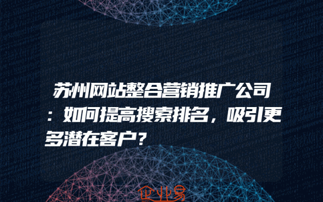 - 苏州网站整合营销推广公司:如何提高搜索排名,吸引更多潜在客户?