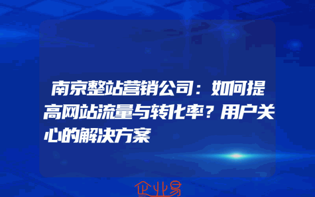 - 南京整站营销公司:如何提高网站流量与转化率?用户关心的解决方案