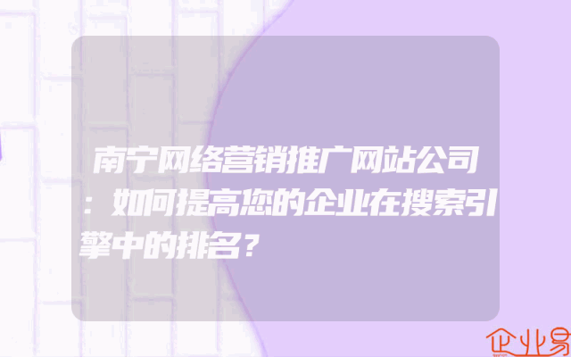 - 南宁网络营销推广网站公司:如何提高您的企业在搜索引擎中的排名?