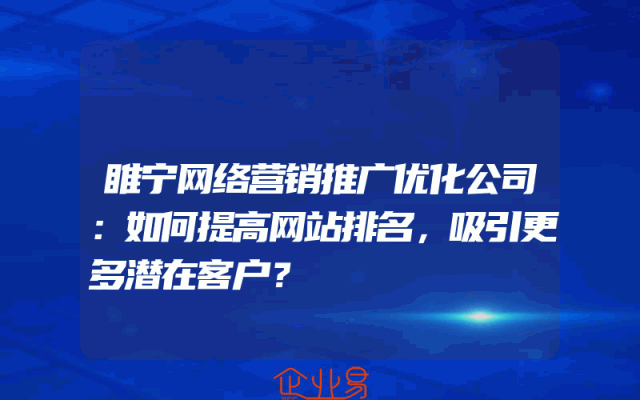 - 睢宁网络营销推广优化公司:如何提高网站排名,吸引更多潜在客户?
