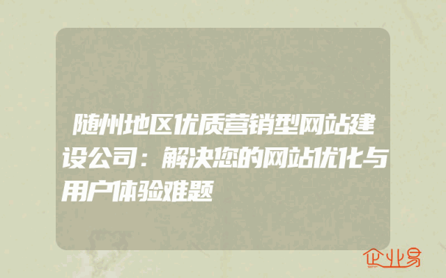 - 随州地区优质营销型网站建设公司:解决您的网站优化与用户体验难题