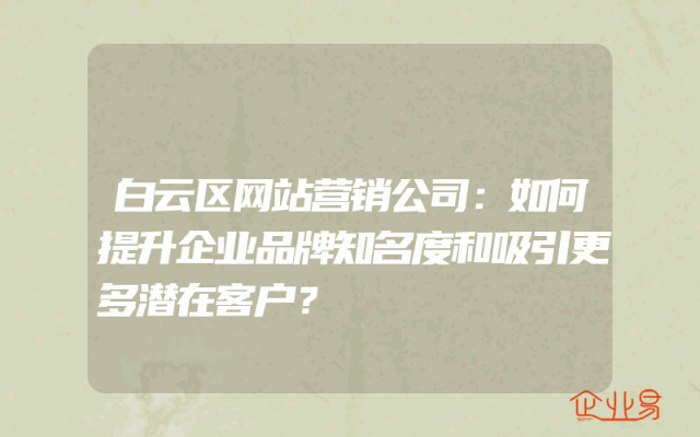 - 白云区网站营销公司:如何提升企业品牌知名度和吸引更多潜在客户?