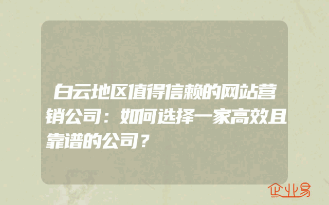 - 白云地区值得信赖的网站营销公司:如何选择一家高效且靠谱的公司?