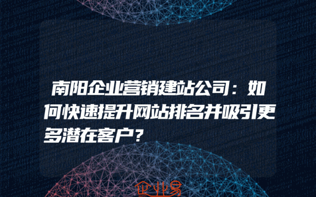 - 南阳企业营销建站公司:如何快速提升网站排名并吸引更多潜在客户?