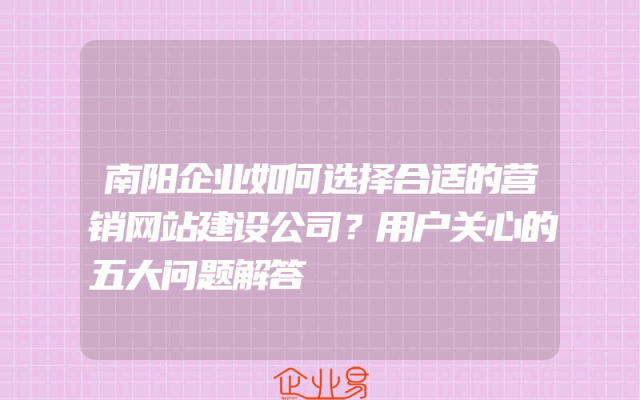 - 南阳企业如何选择合适的营销网站建设公司?用户关心的五大问题解答