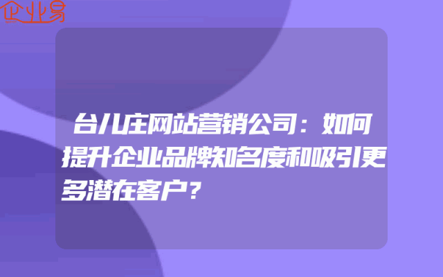 - 台儿庄网站营销公司:如何提升企业品牌知名度和吸引更多潜在客户?
