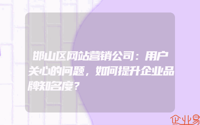 - 邯山区网站营销公司:用户关心的问题,如何提升企业品牌知名度?