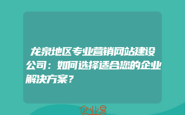 - 龙泉地区专业营销网站建设公司:如何选择适合您的企业解决方案?
