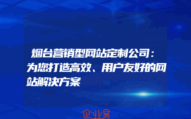 - 烟台营销型网站定制公司:为您打造高效、用户友好的网站解决方案