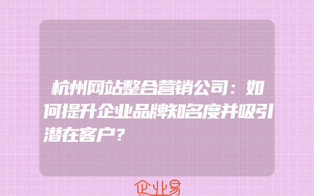 - 杭州网站整合营销公司:如何提升企业品牌知名度并吸引潜在客户?