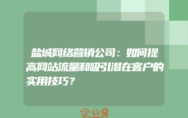 - 盐城网络营销公司:如何提高网站流量和吸引潜在客户的实用技巧?