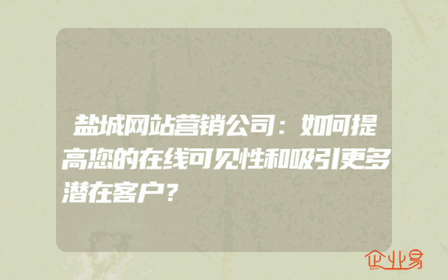 - 盐城网站营销公司:如何提高您的在线可见性和吸引更多潜在客户?
