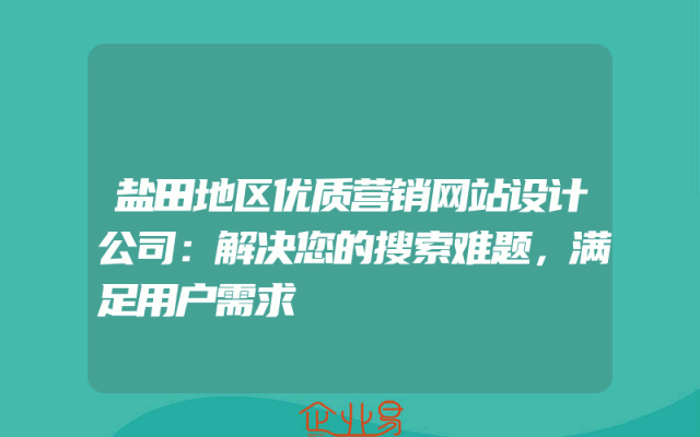 - 盐田地区优质营销网站设计公司:解决您的搜索难题,满足用户需求