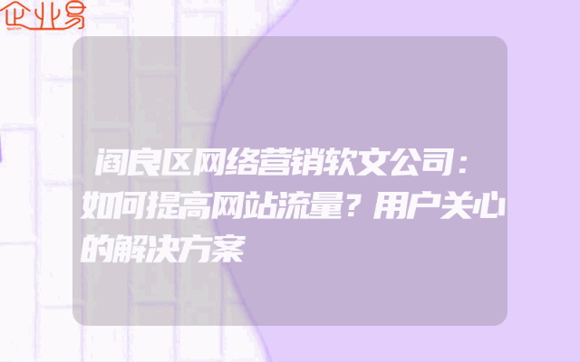 - 阎良区网络营销软文公司:如何提高网站流量?用户关心的解决方案